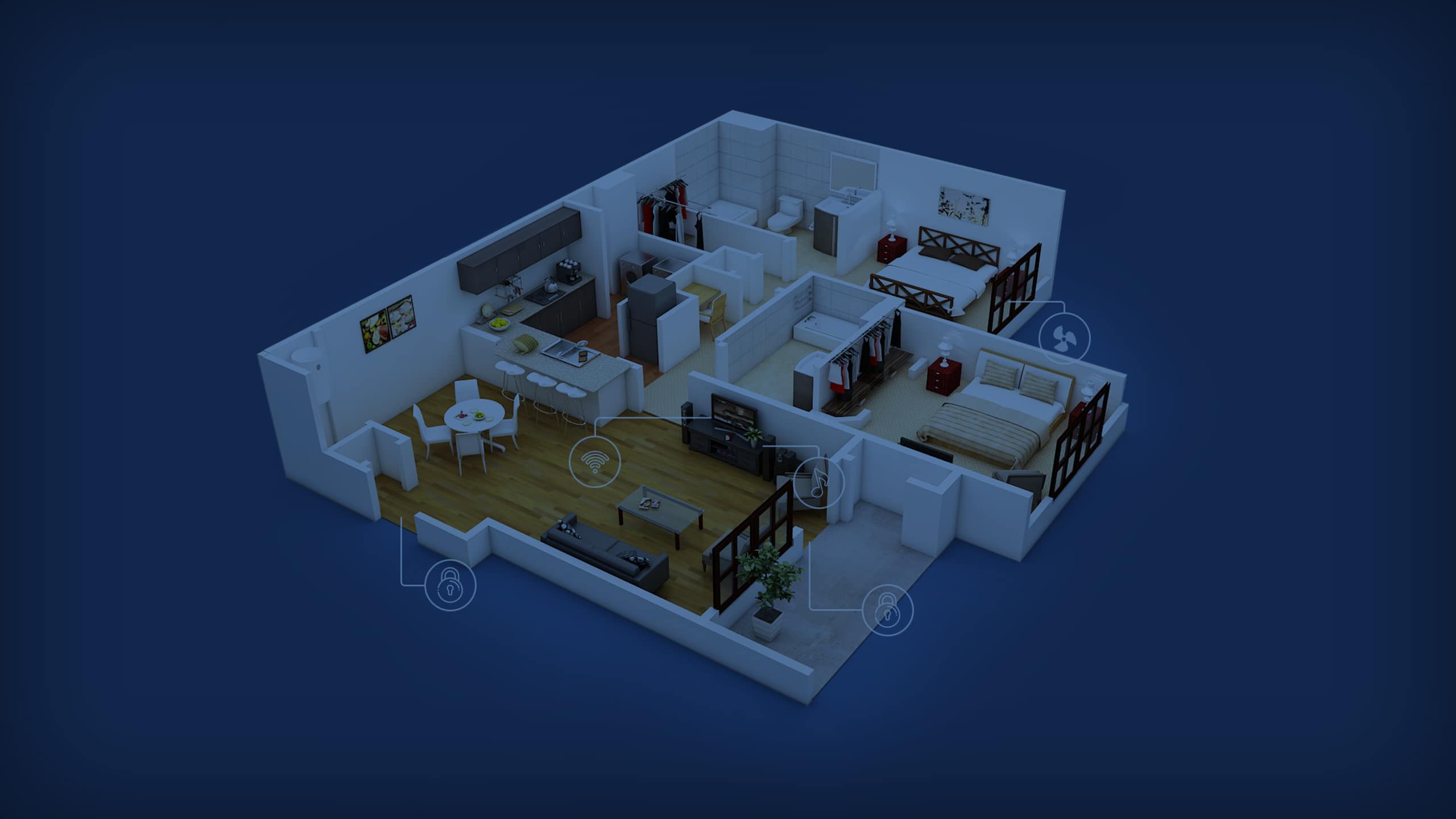 Vďaka integrácii rôznych zariadení s inteligentný systém domácej automatizácie, členovia domácnosti môžu ovládať jednotlivé, vybrané alebo mnohé prvky súčasne pomocou jedného ovládacieho nástroja.